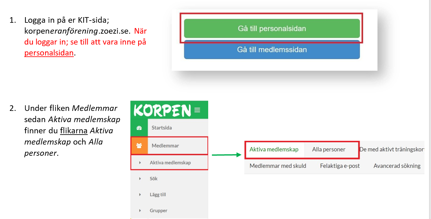 OBS. Dessa steg kommer behöva göras igen när deras medlemskapet går ut, vilket är datumet som valdes när medlemskapet startades i KIT.