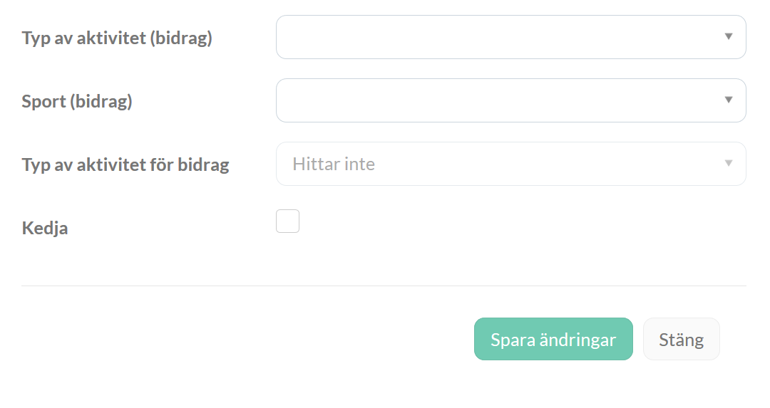 Går det för APN inte att välja aktivitet så som det visas ovan beror det på kopplingen till kommunen. Det går att ignorera den varningen då vi i sådant fall istället använder aktivitetens namn.